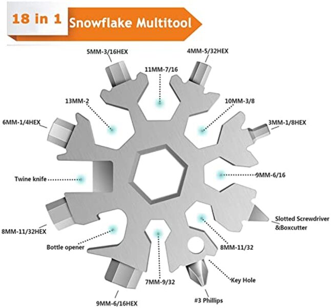 Privjezak za ključeve sa više alata sa divnim izgledom jedinstvenog oblika može biti savršen poklon za vašeg tatu, muža, dečka, bilo kog muškarca. Jedinstveni oblik pahulje obuhvata osjećaj lepote kada stoji na stolu ili ga držite u rukama.