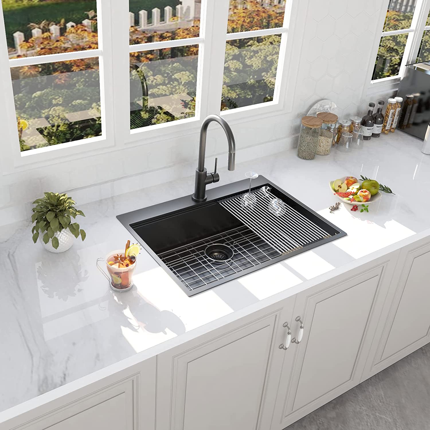 Može slušiti kao sušač posuđa i voda kaplje direktno u sudoperu. Nerđajućih šipki nema problema sa kvašenjem.