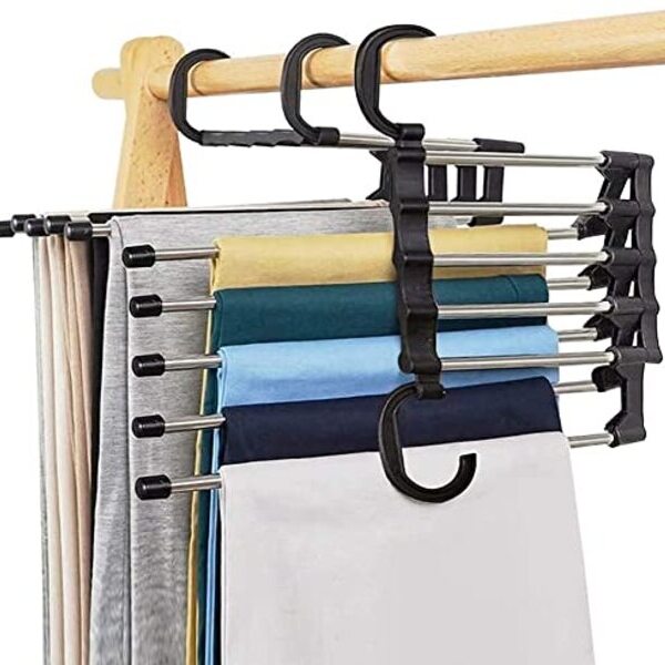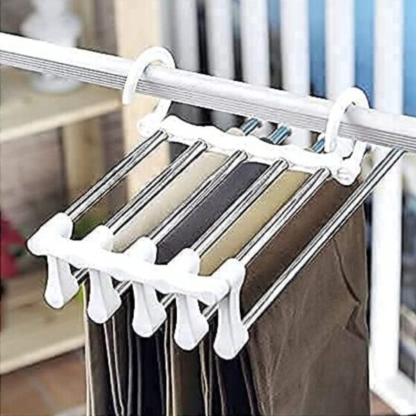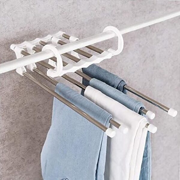 Podesivi ofinger za odlaganje može se trajno okačiti sa dvije kuke ili se može okačiti vertikalno, može držati do 5 pari pantalona odjednom i učiniće vaš ormar organizovanijim.