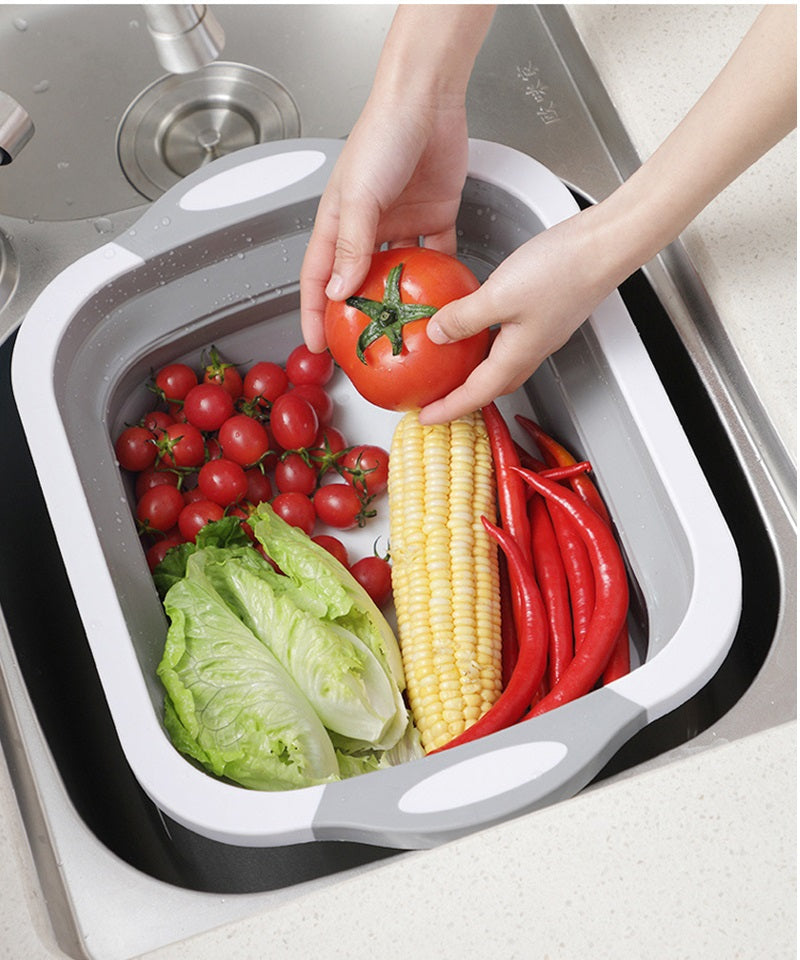 Pored daske za sečenje, ovaj proizvod nudi i mogućnost čuvanja voća i povrća kao i njihovog pranja sa dodatkom za odvod vode.