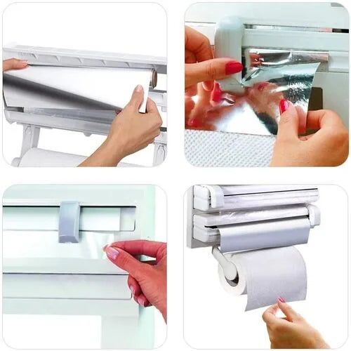 Odlaganje folije, aluminijumske folije, papira za pečenje, ubrusa, začina u jednom praktičnom elementu.