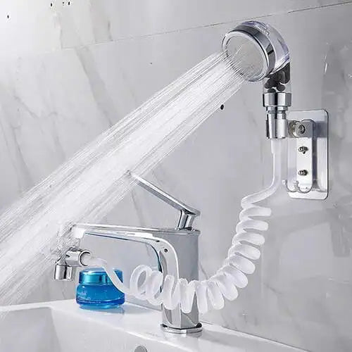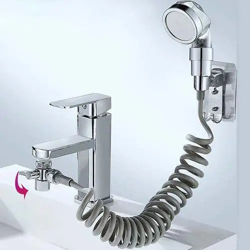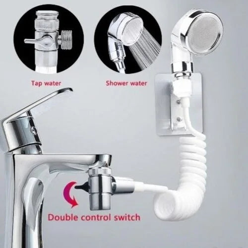 Tuš koji Vam omogućava funkcionalnije korišćenje lavaboa. Rastegljivo crevo i samoljepljivi držač tuša koji se kači bez bušenja posebni su detalji ovog kompleta.